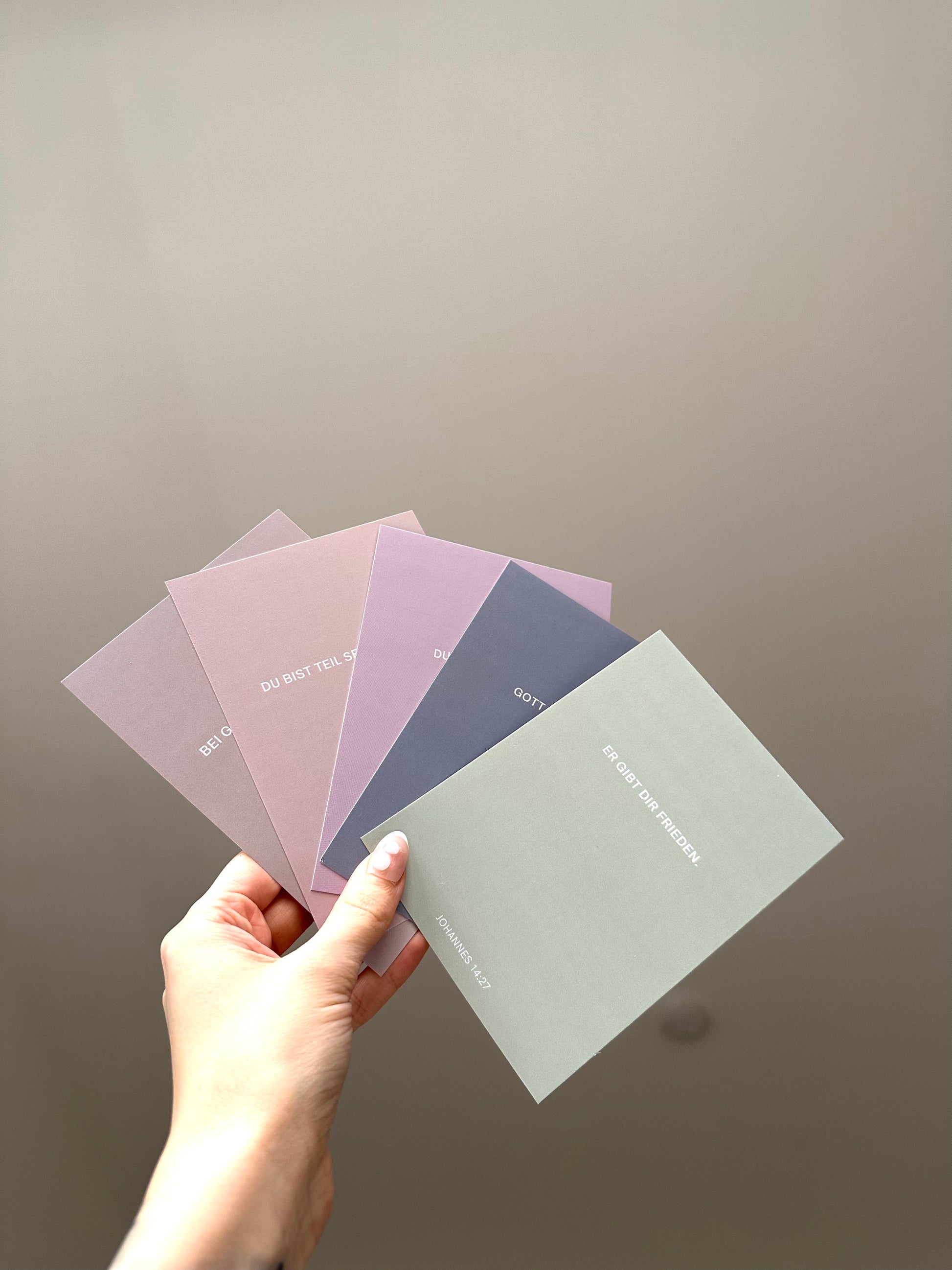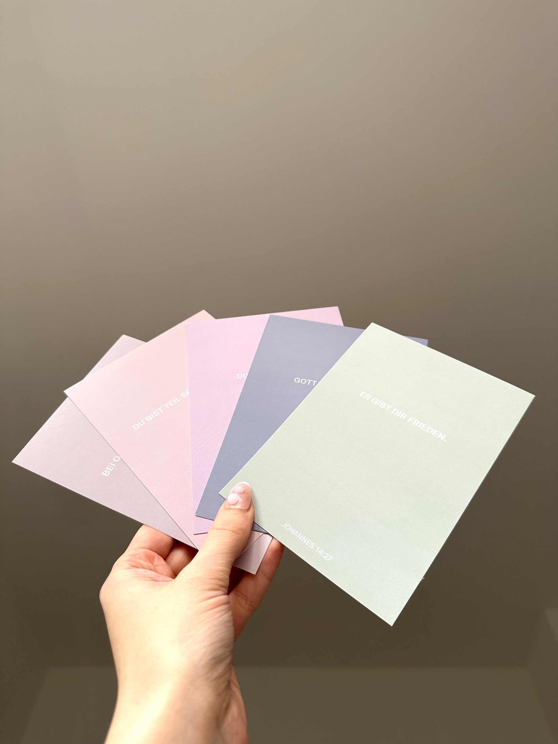 Diese Karten mit ermutigenden Versen - im Set oder einzeln - sind perfekt zum Verschenken und um Gottes Wort liebevoll zu verbreiten.